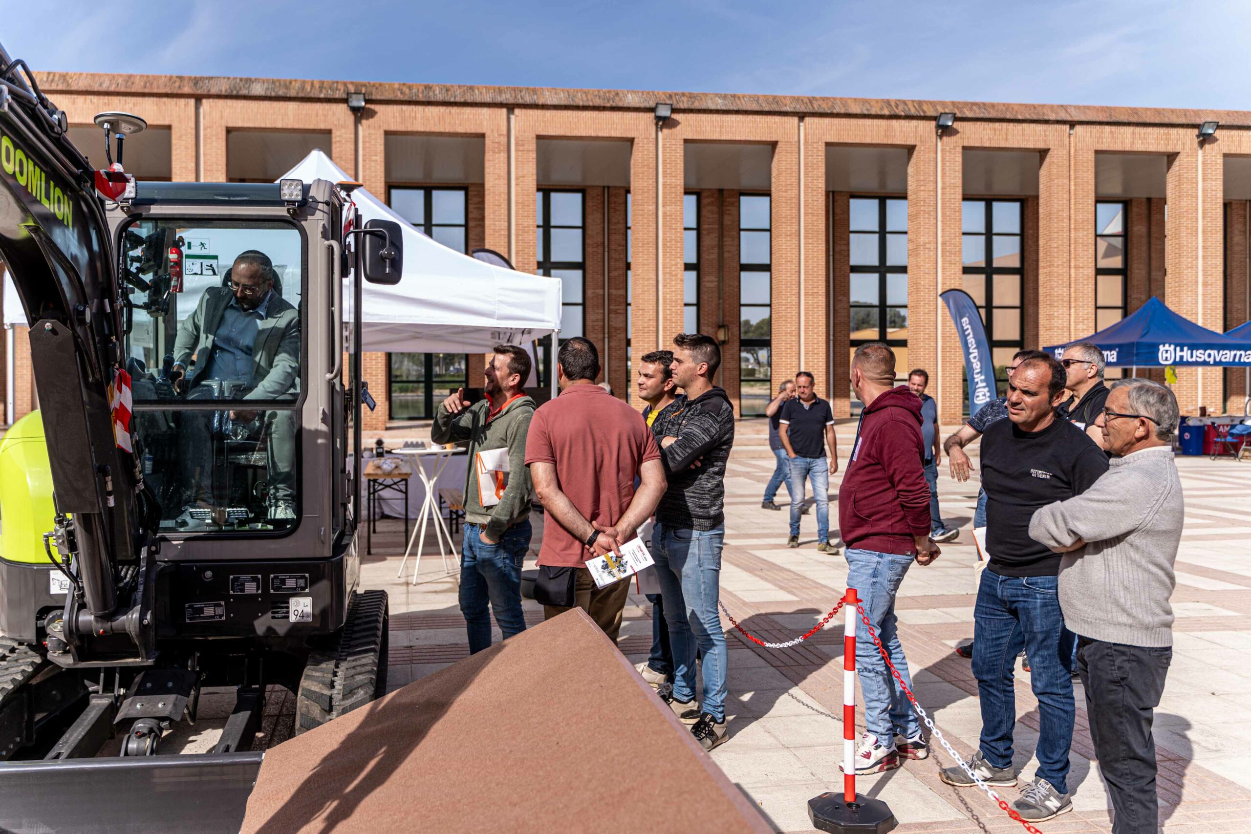 - Stand exterior demo: ubicado en el área exterior, donde los asistentes pudieron ver y probar en directo los equipos CHCNAV instalados en maquinaria real. Este espacio fue clave para demostrar el rendimiento de nuestras soluciones en condiciones reales de trabajo.