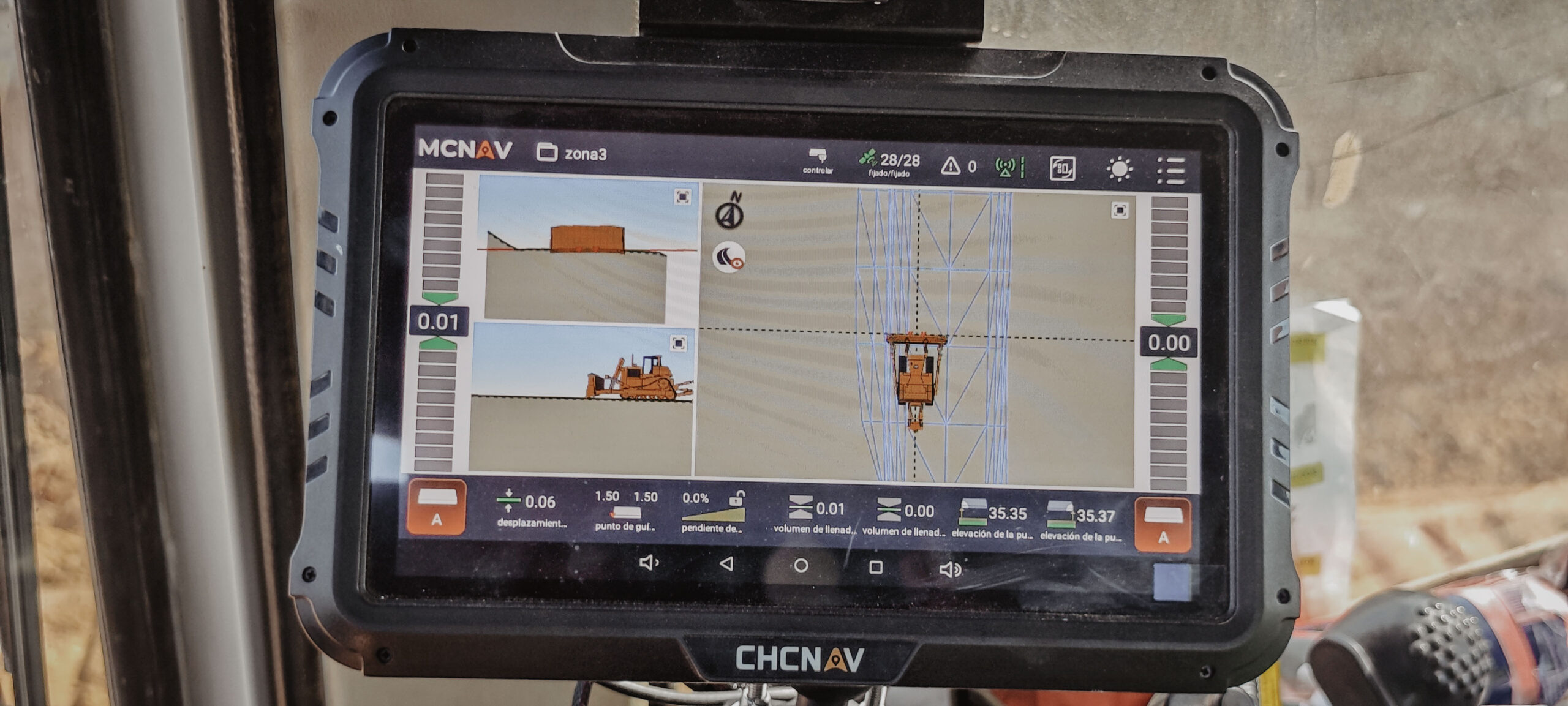 Este sistema permite que el operador trabaje directamente sobre el modelo digital del proyecto, visualizando cortes y rellenos en tiempo real sin necesidad de estacas o comprobaciones continuas con estación total.