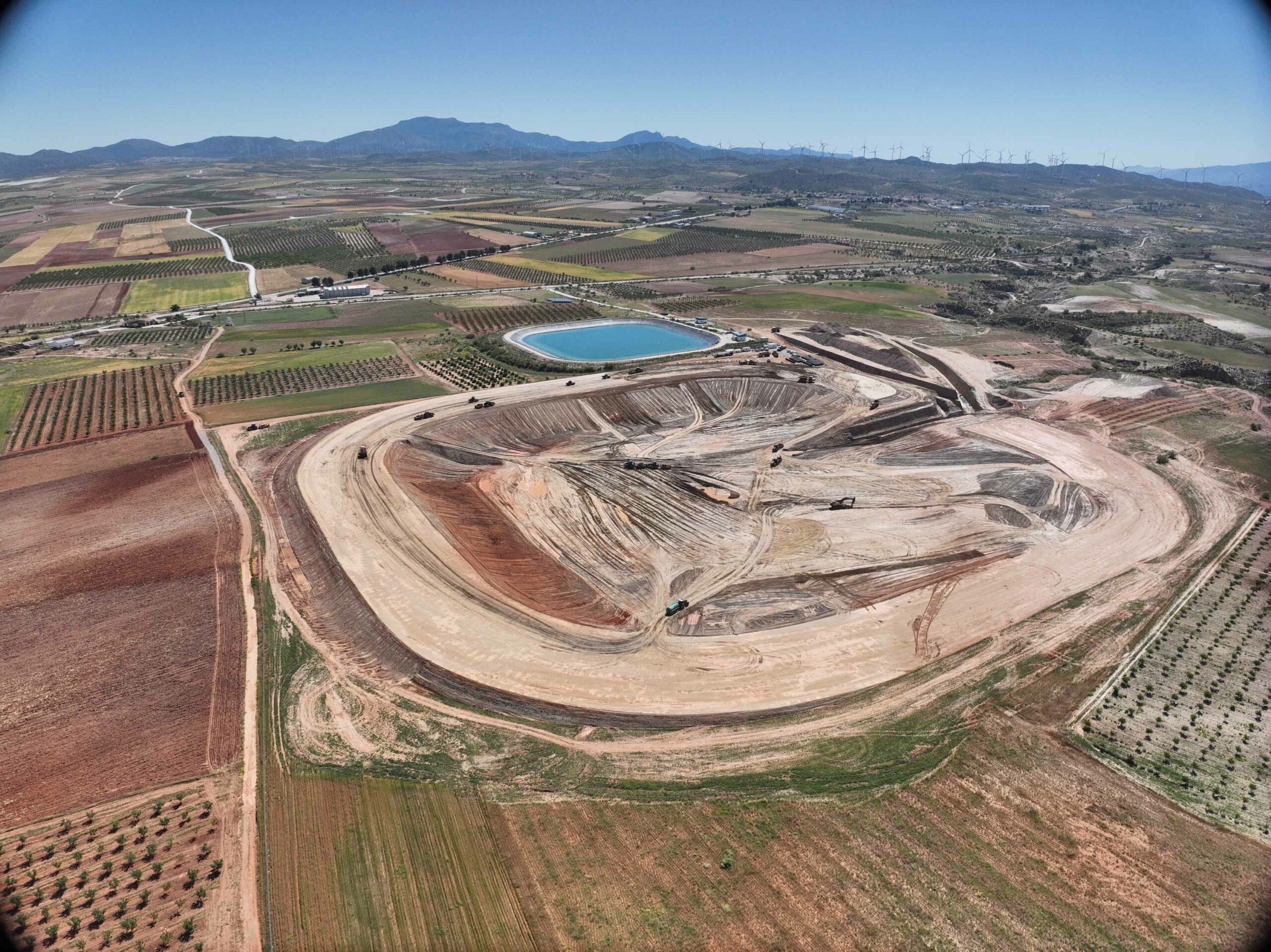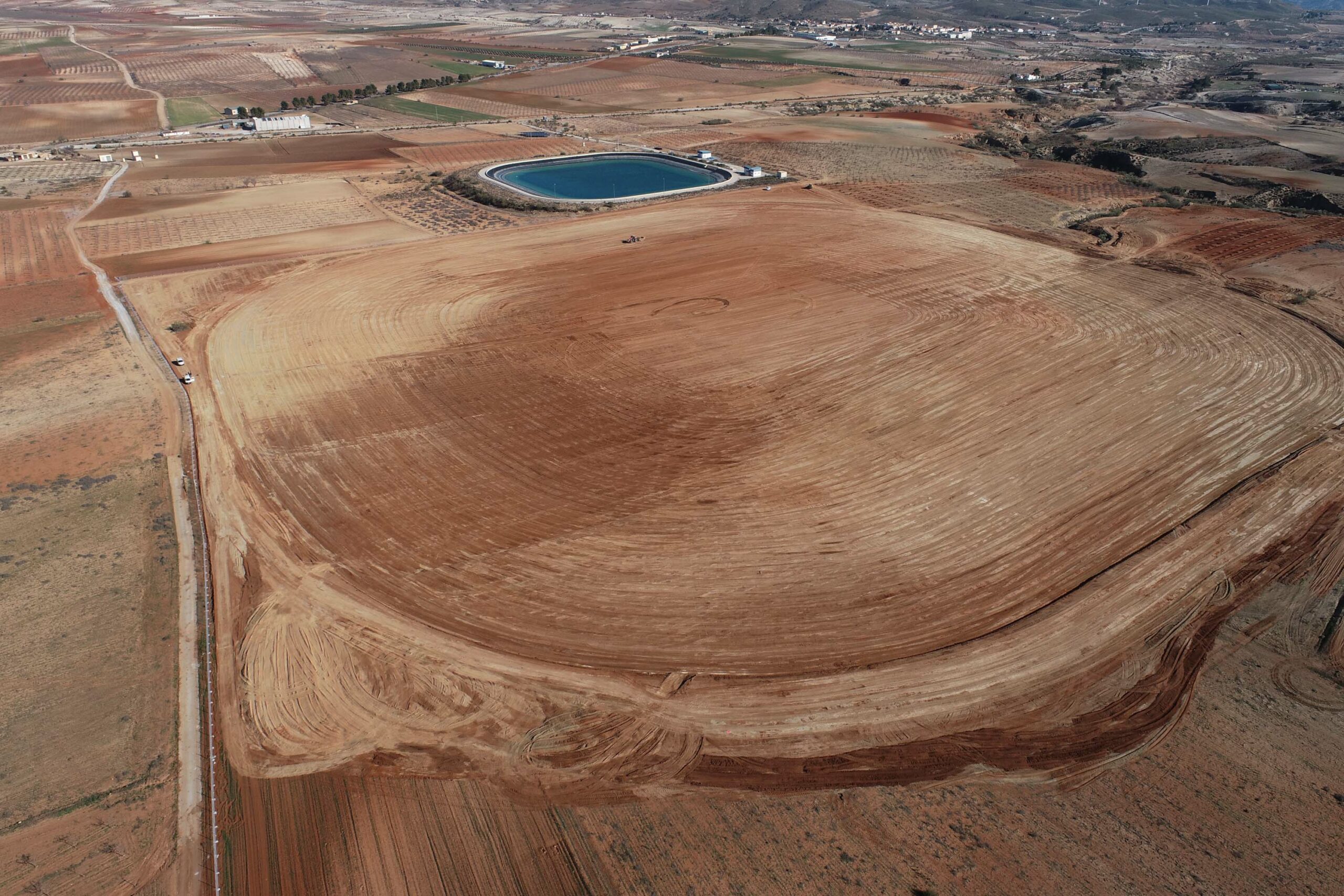 La balsa, con una capacidad de 1 hectómetro cúbico, ha supuesto el movimiento de más de 600.000 m³ de tierra, todo ello ejecutado con sistemas de guiado 3D en maquinaria y un exhaustivo modelado del terreno desarrollado por Geogest.